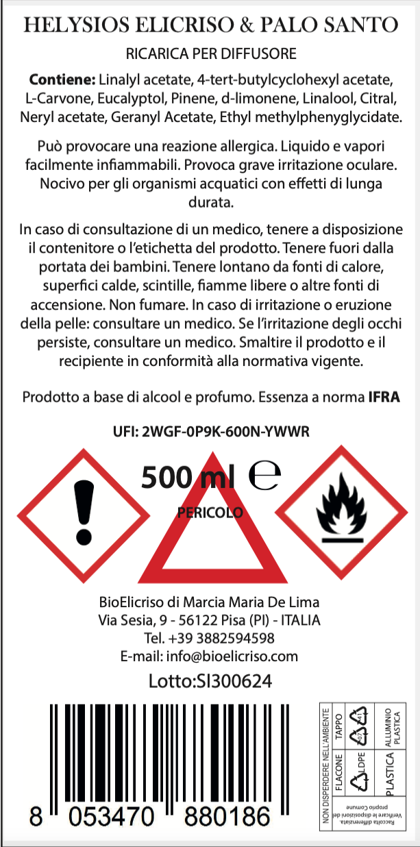 Il palo santo è amato e apprezzato da tantissime persone in tutto il mondo per la sua fragranza intensa ed avvolgente e per i benefici che si possono trarre da esso. Il Palo Santo è in grado di cacciare via lo stress e la negatività aiutandoti a ritrovare il benessere che meriti. Mescolandolo con l’essenza di Elicriso abbiamo dato vita a una fragranza del tutto innovativa che stupirà l’olfatto di molti.